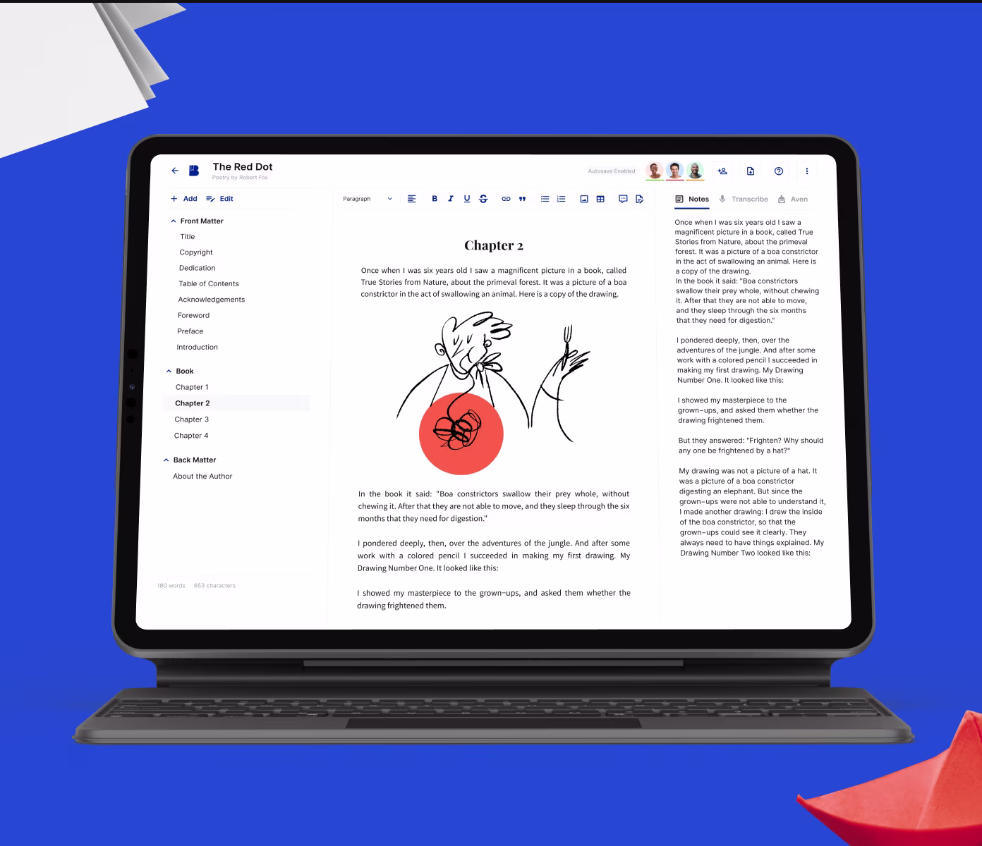 Blooksy is a user-centric platform that empowers authors to write faster and keep everything in one place. Dictation simplifies the writing process and helps quickly capture ideas, dictate chapters and polish thoughts. More productive writing sessions result in faster book creation, and overall, the platform is easy to use.